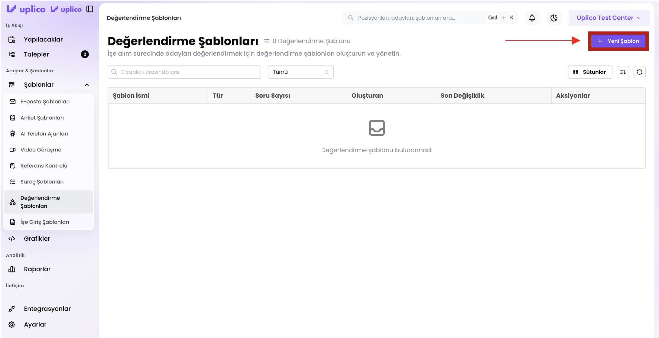- Değerlendirme Şablonları sekmesine tıklayın.