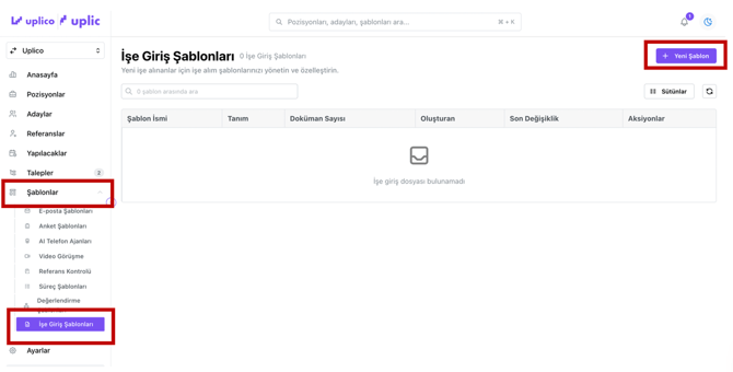 - İşe Alım Şablonları sekmesine tıklayın