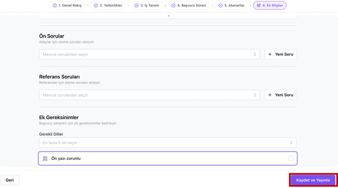 - Ön yazı zorunlu seçeneğini işaretleyerek adaylardan cover letter isteyebilirsiniz.